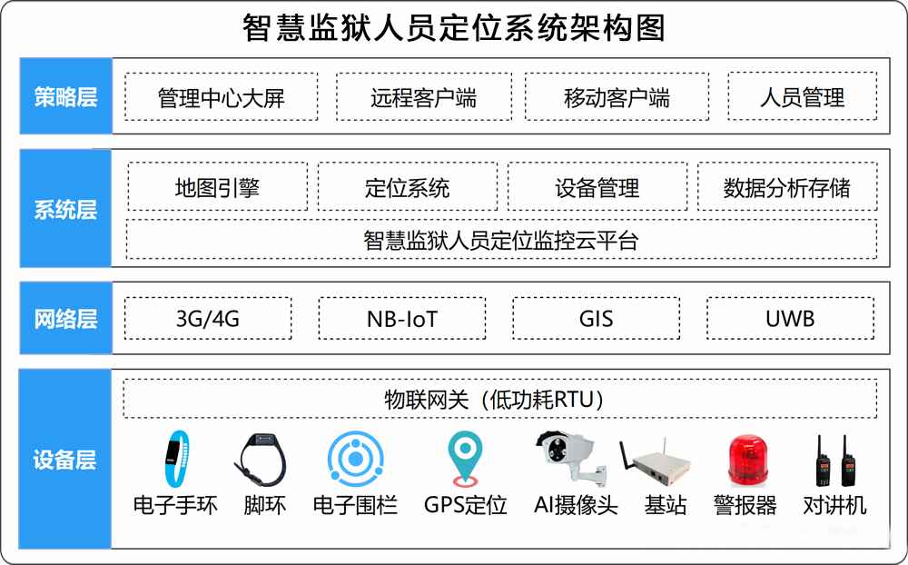 2.定位系統:智慧監獄采用定位技術,對服刑人員和監獄工作人員進行實時監控和定位,以實現監獄內部的安全控制和管理。