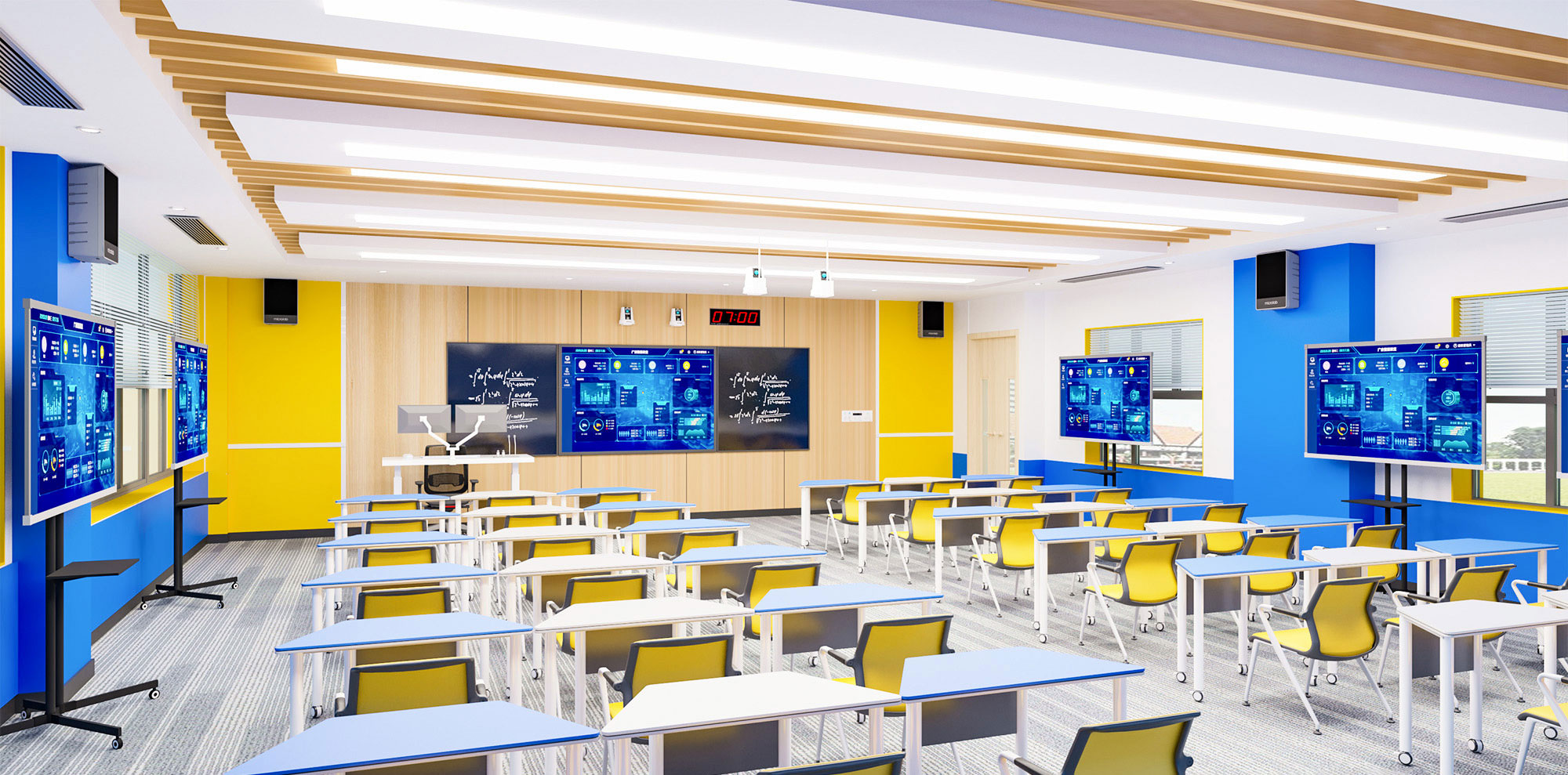 多媒體展示系統(tǒng):包括智能白板、投影儀、電子屏幕等設備,用于呈現教學內容和多媒體資源。